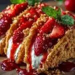 Strawberry Crunch Cheesecake Tacos are a fun and delicious dessert that combines the richness of cheesecake with the playful shape of taco shells. This recipe is great for gatherings, parties, or just a sweet treat at home. Not only do they taste amazing, but they are also easy to make and customize. Everyone loves strawberries, and the crunchy topping makes each bite even better!