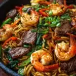 Surf & Turf Noodle Stir-Fry with Steak and Shrimp is more than just a meal—it’s an experience that delivers flavor, versatility, and nutrition in every bite. Whether you’re cooking for your family or hosting friends, this dish will surely impress. Don’t hesitate to personalize it with your favorite ingredients and flavors. Happy cooking!