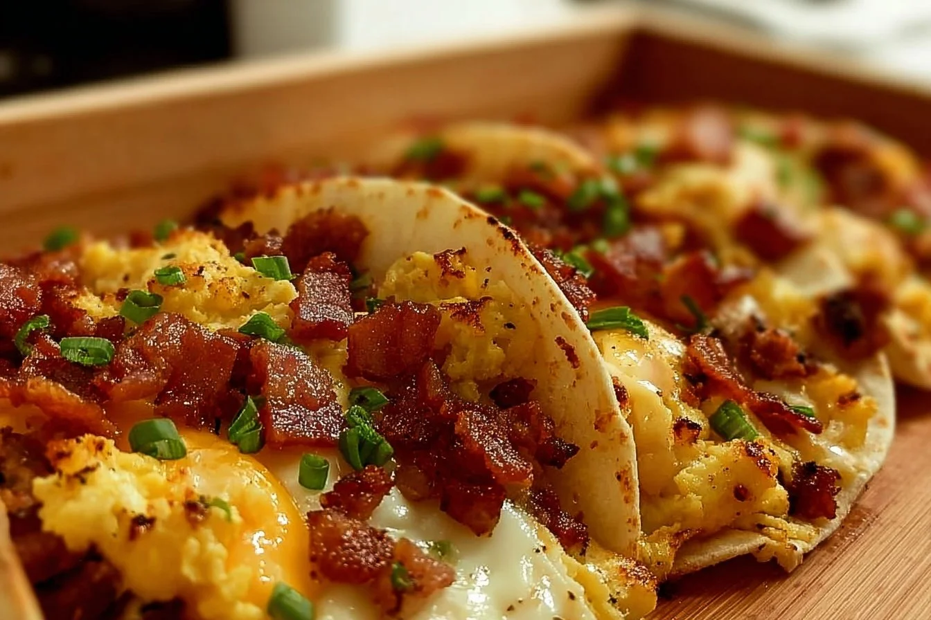 Delightful baked breakfast tacos filled with crispy bacon, fluffy eggs, and cheesy goodness, perfect for mornings and brunch gatherings.