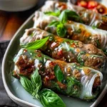 Delightful Thai Basil Beef Rolls bursting with fresh flavors, combining ground beef and aromatic Thai basil wrapped in rice paper.
