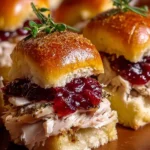These sliders are best served warm right out of the oven. You can place them on a platter for easy sharing. They are perfect for parties, game day, or holiday festivities. To enhance the experience, consider serving them with extra cranberry sauce or a side of shredded lettuce for added crunch.