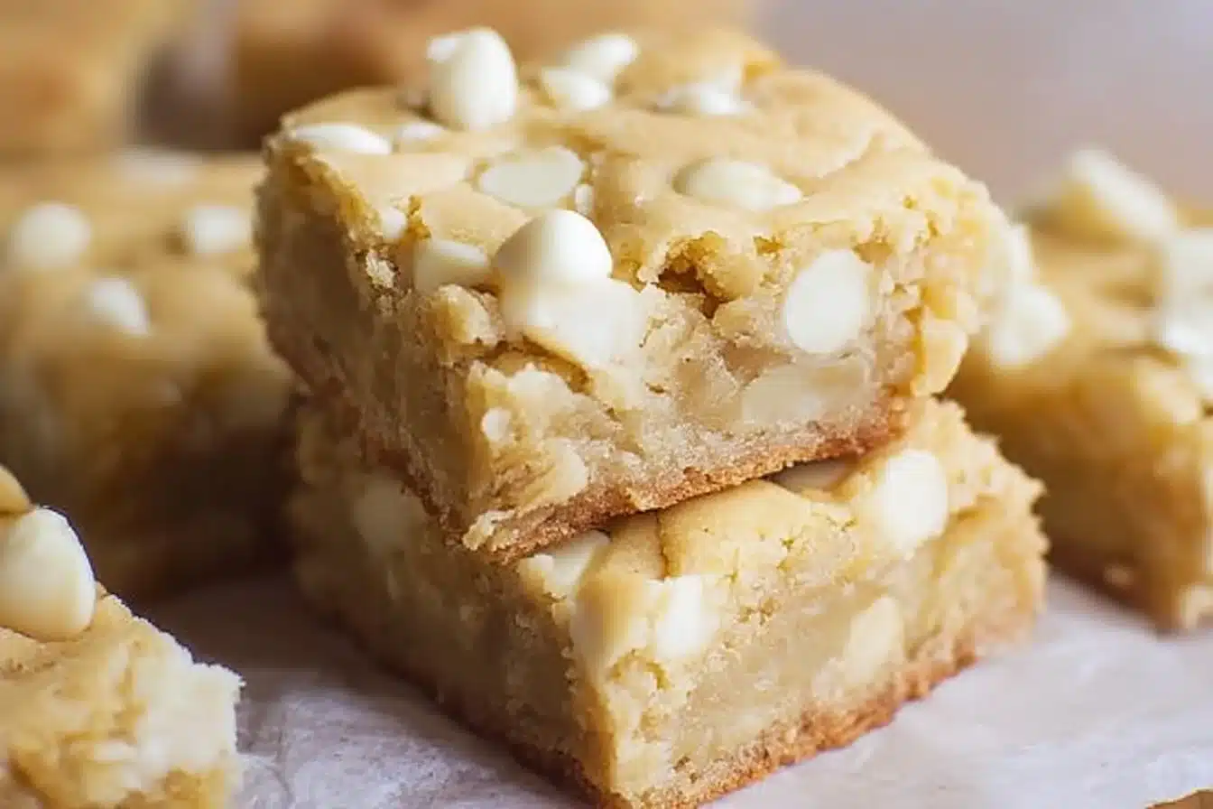 Soft and chewy blondies made with rich white chocolate, perfect for satisfying sweet cravings.
