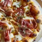 White Pizza with Beef Prosciutto Hot Honey is a mouthwatering dish that beautifully combines savory and sweet flavors. Its gourmet aspect makes it perfect for special occasions or just a cozy night in. With simple steps and a few quality ingredients, you can create a pizza that not only looks impressive but tastes amazing. Enjoy the delightful experience of making and savoring this unique pizza you and your loved ones will remember!